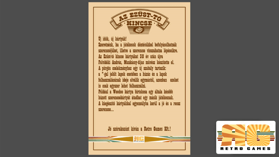 Az Ezüst-tó kincse kiegészítő kártyacsomagjának szabálykártyája.